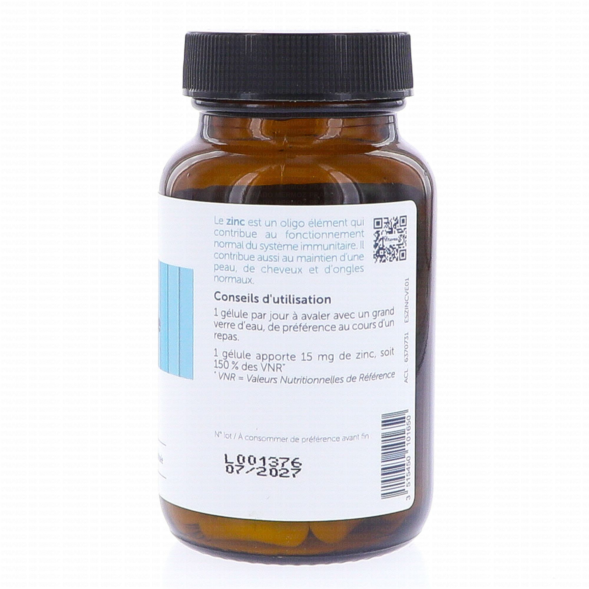 - Indications mentionnées sous réserve d'une consommation minimale de 1,5 mg de Zinc. Apport journalier recommandé (AJR) en Zinc 10 mg