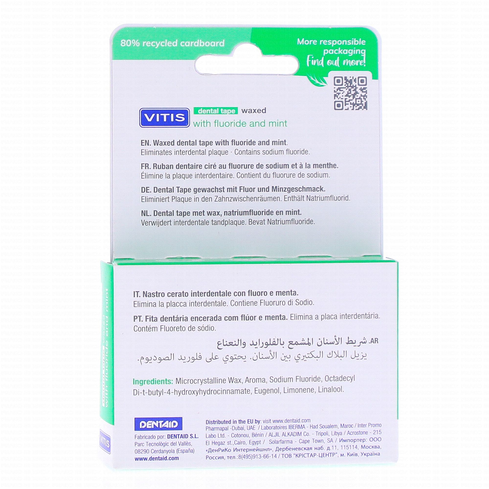 VITIS Ruban dentaire ciré au fluorure de sodium et menthe