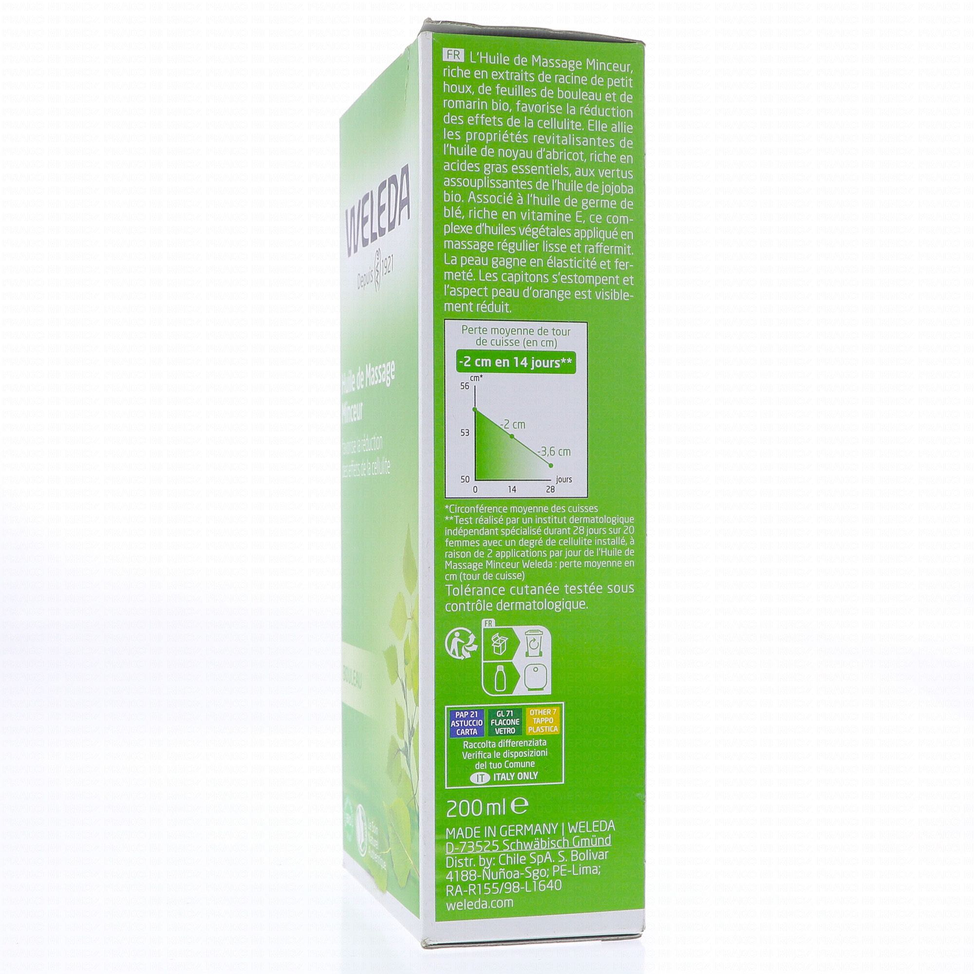 A base d'une formule naturelle, l'huile de massage Weleda active les échanges circulatoires et du tissus cutané. Ainsi elle rapporte à la peau son élasticité et sa fermeté.