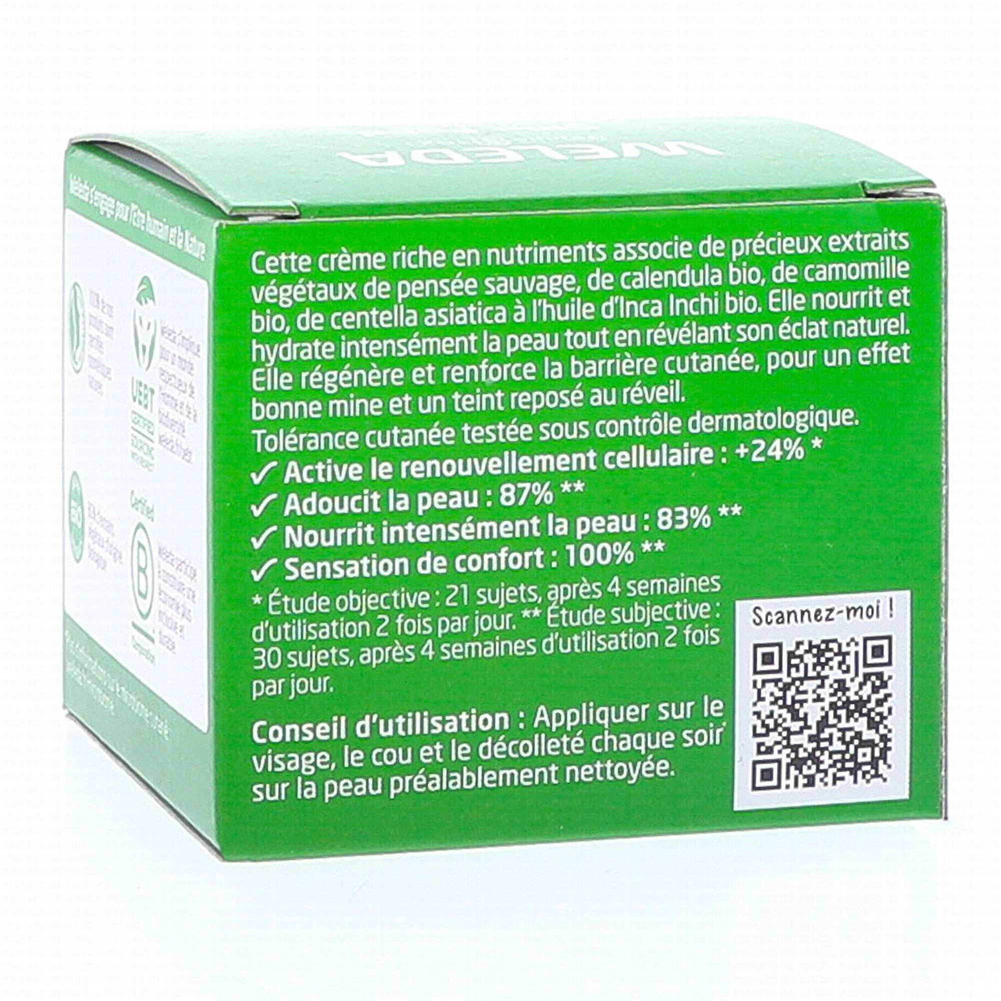 Riche en nutriments la crème de nuit skin food de chez Weleda associe de précieux extraits végétaux de pensée sauvages, de calendula bio, de camomille bio, de centella asiatica à l'huile d'inca inchi bio pour une nutrition et une hydratation intense de la peau. Elle permet également de renouveler l'éclat naturel du visage et renforcer la barrière cutanée pour un effet bonne mine et un teint reposé.