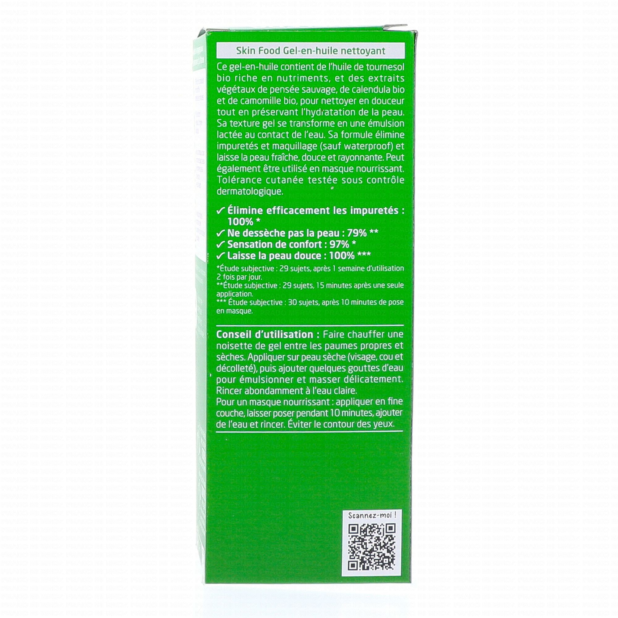 Formulé à base d'huile de tournesol bio riche en nutriment, et des extraits végétaux de pensées sauvage, de calendula bio et de camomille bio, le gel-en-huile Skin food de chez Weleda nettoie en douceur tout en préservant l'hydratation de la peau. Au contact de l'eau, sa texture gel se transforme en une émulsion lactée pour éliminer en profondeur les impuretés, et le maquillage (sauf waterproof) et laisse la peau fraîche, rayonnante et douce. Il peut également être utilisé en masque nourrissant.