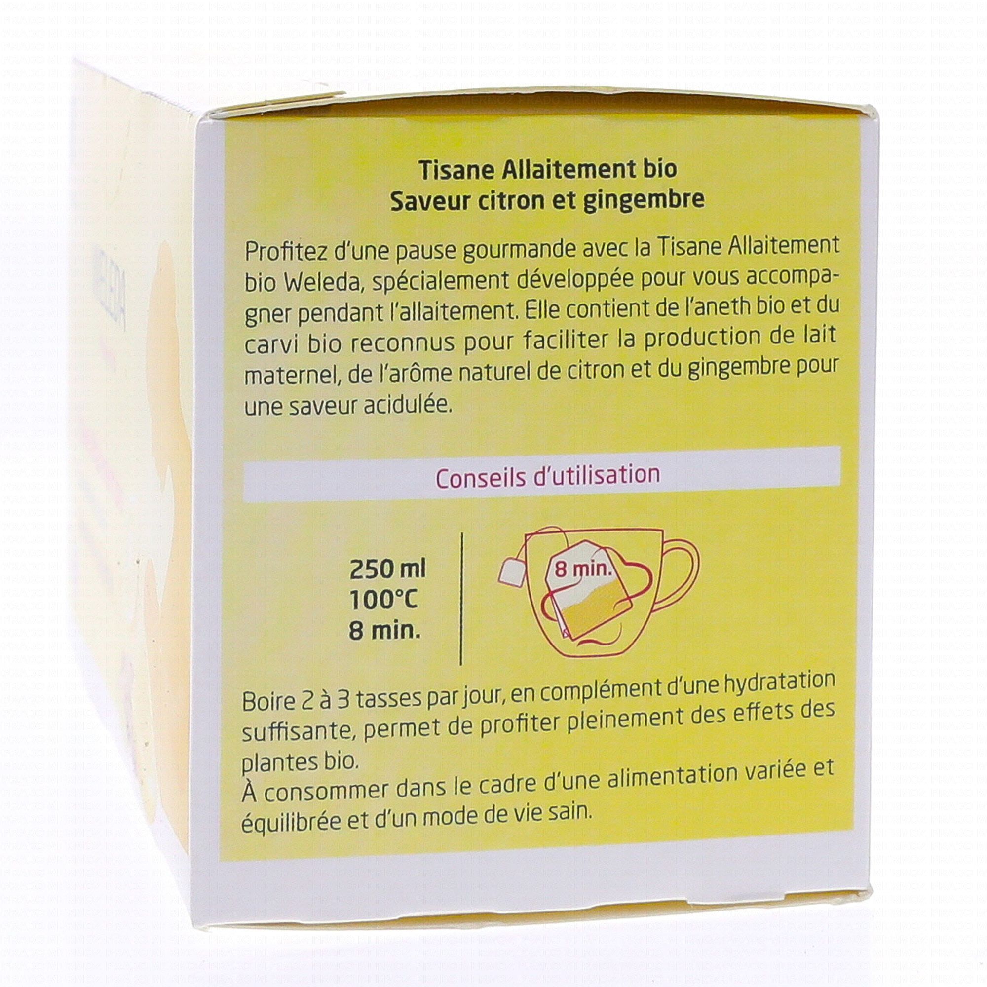 WELEDA Tisane Allaitement Bio Saveur Citron et Gingembre x20 Sachets contient les éléments suivants :