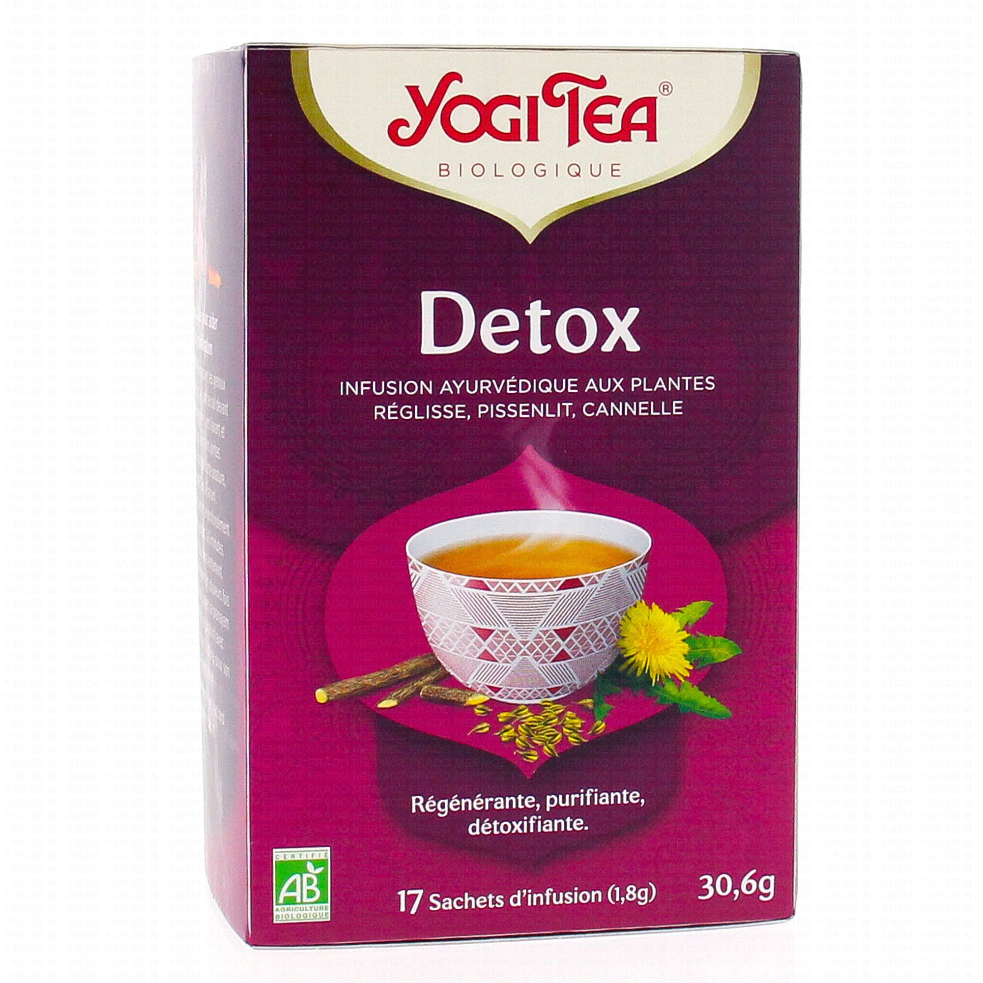 YOGI TEA Detox 17 sachets de 1.8g est une préparation qui contribue à favoriser les fonctions d'élimination de l'organisme grâce à la présence de Réglisse et de Pissenlit.